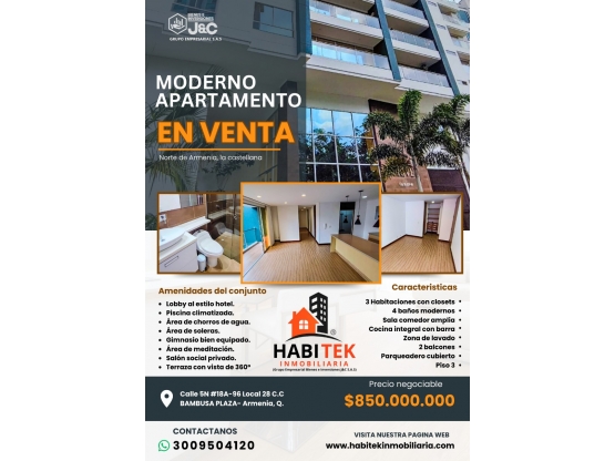 🏡 Se vende hermoso apartamento en el exclusivo barrio La Castellana, ubicado en el 3er piso de un conjunto residencial moderno y lleno de comodidades.