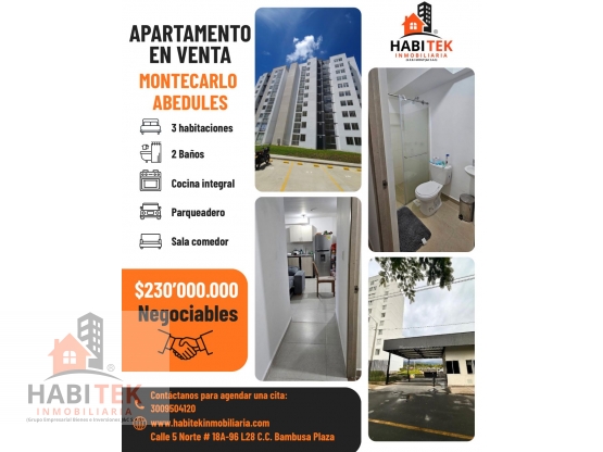 Se vende hermoso apartamento en el exclusivo sector Montecarlo – Abedules, ideal para quienes buscan comodidad, tranquilidad y una excelente ubicación